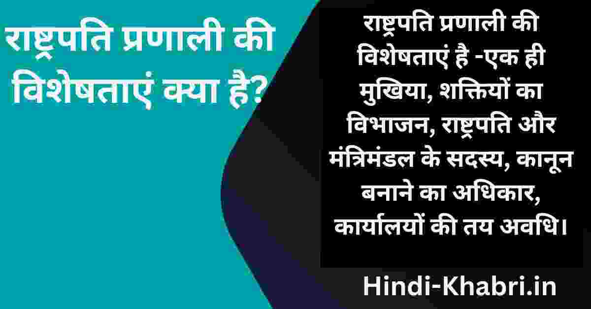 राष्ट्रपति प्रणाली की विशेषताएं क्या है? नमस्कार दोस्तों स्वागत है आपका Hindi-khabri.in में. दोस्तों आज हम जानेंगे कि राष्ट्रपति प्रणाली की विशेषताएं क्या है? और राष्ट्रपति प्रणाली की प्रमुख विशेषताएं […]