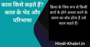 नमस्कार दोस्तों आप सभी का स्वागत है Hindi-khabri.in में दोस्तों आज के इस आर्टिकल में हम जानेंगे कि काल किसे कहते हैं?काल के भेद और परिभाषा के बारे में इस आर्टिकल में हम जानेंगे तो दोस्तों लिए बिना देर किए हम आज के अपने इस आर्टिकल काल किसे कहते हैं?के बारे में जानते हैं।