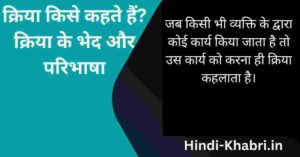 नमस्कार दोस्तों आप सभी का स्वागत है आपका Hindi-khabri.in के एक नए आर्टिकल में, इस आर्टिकल में हम जानेंगे कि क्रिया किसे कहते हैं।Kriya Kise Kahate Hain, इससे पहले हम संज्ञा और सर्वनाम के बारे में पढ़ चुके हैं तो आइए विस्तार से हम जानते हैं की क्रिया किसे कहते हैं-