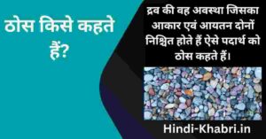 नमस्कार दोस्तों आप आप सभी लोगों का Hindi-Khabri.in में आप सभी लोगों का स्वागत है। दोस्तों आज के हम इस नए आर्टिकल में यह जानेंगे कि ठोस किसे कहते हैं(Thos Kise Kahate Hain),ठोस के प्रकार और गुण और भी बहुत कुछ। आज के इस आर्टिकल को पढ़ने के बाद आपको ठोस से जुड़ी सारी जानकारी प्राप्त हो जाएगी। तो दोस्तों आई बिना देर किए जानते हैं कि ठोस किसे कहते हैं-